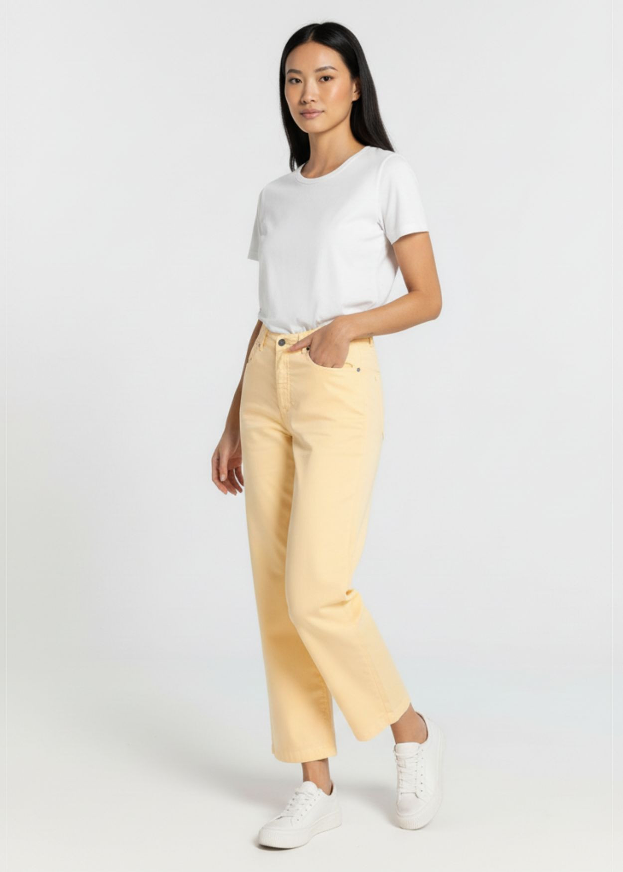 Le pantalon Aurora-Pêche Satin de Cimarron réinvente le denim classique avec une approche résolument lumineuse et sophistiquée. Sa teinte jaune pâle, aux reflets évoquant la douceur d'une pêche, apporte immédiatement une note de fraîcheur et de vitalité à votre garde-robe. Ce coloris solaire, à la fois audacieux et facile à porter, se prête magnifiquement aux journées printanières et estivales, captant la lumière pour sublimer votre allure quotidienne.