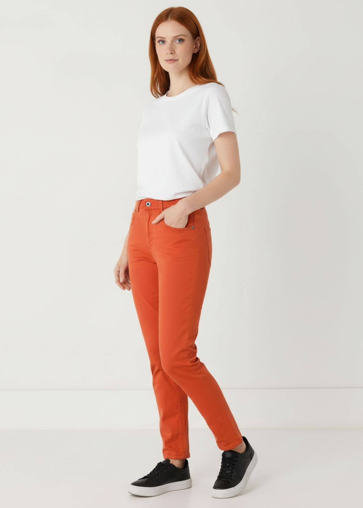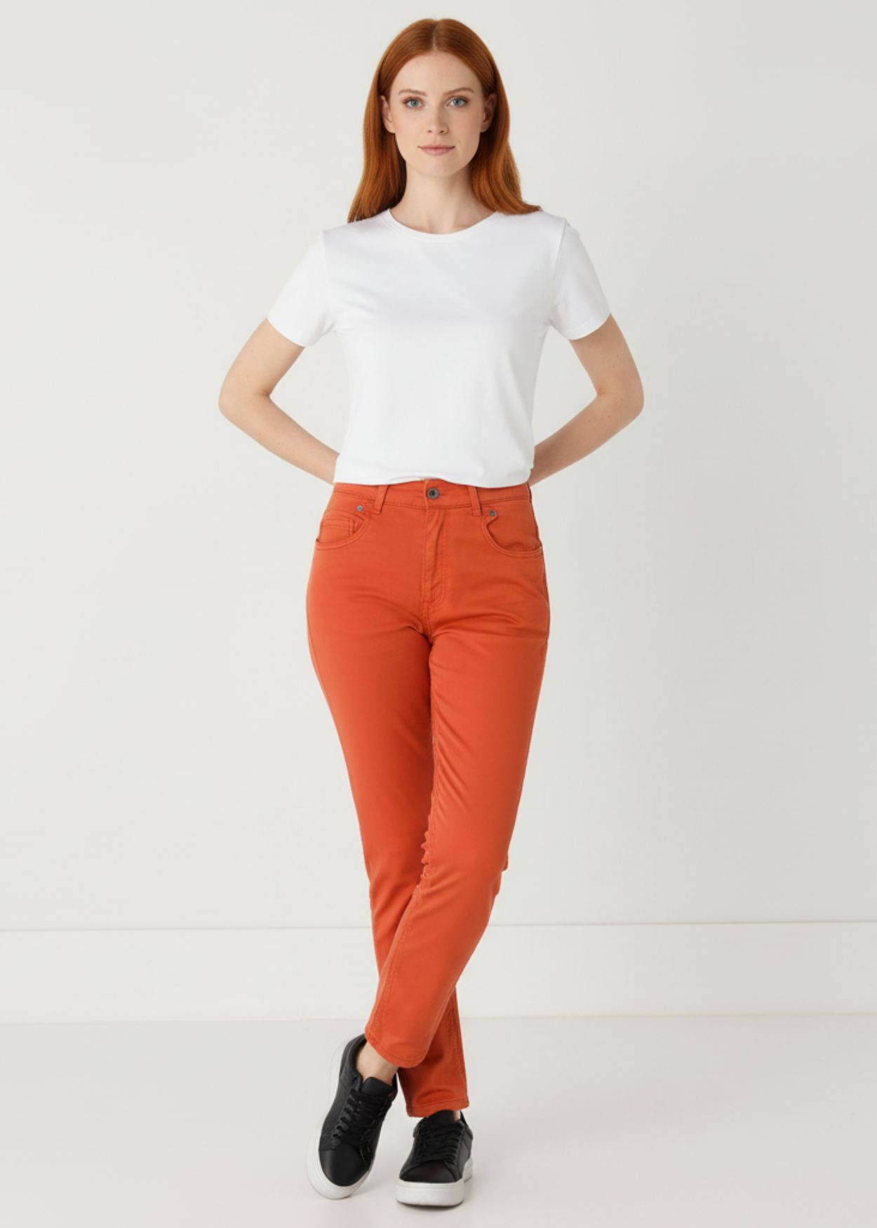 L'aspect visuel de ce modèle est tout aussi séduisant. Le fini satiné capte subtilement la lumière, ce qui donne à ce bleu profond une dimension vibrante et élégante. Contrairement à un coton rigide, le satin apporte une souplesse de mouvement bienvenue, vous permettant de passer d'une journée de travail dynamique à une soirée entre amis sans jamais vous sentir entravée. La silhouette est mise en valeur de façon naturelle : la taille haute souligne délicatement les hanches tandis que la coupe droite allonge la jambe pour un résultat harmonieux et flatteur.