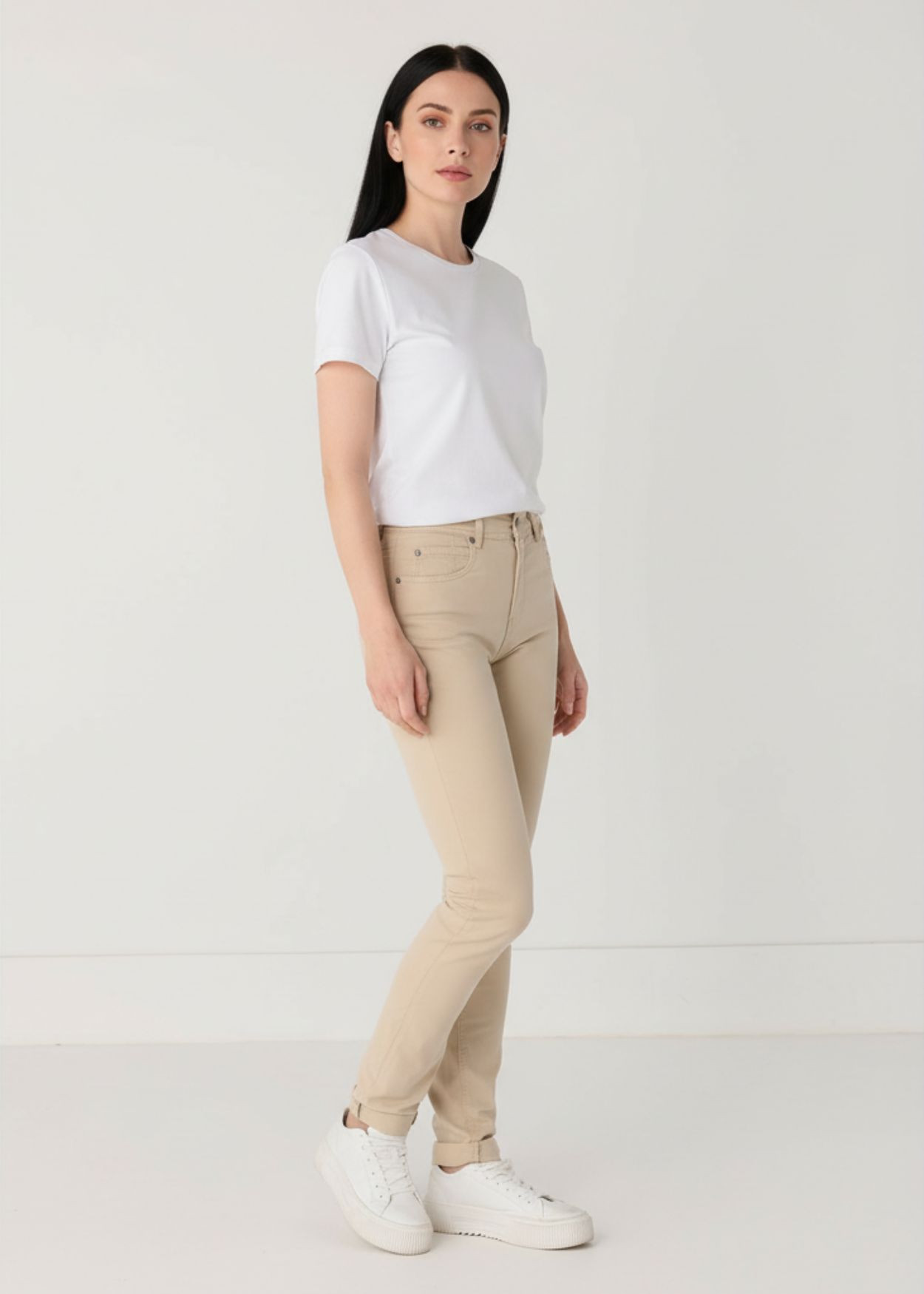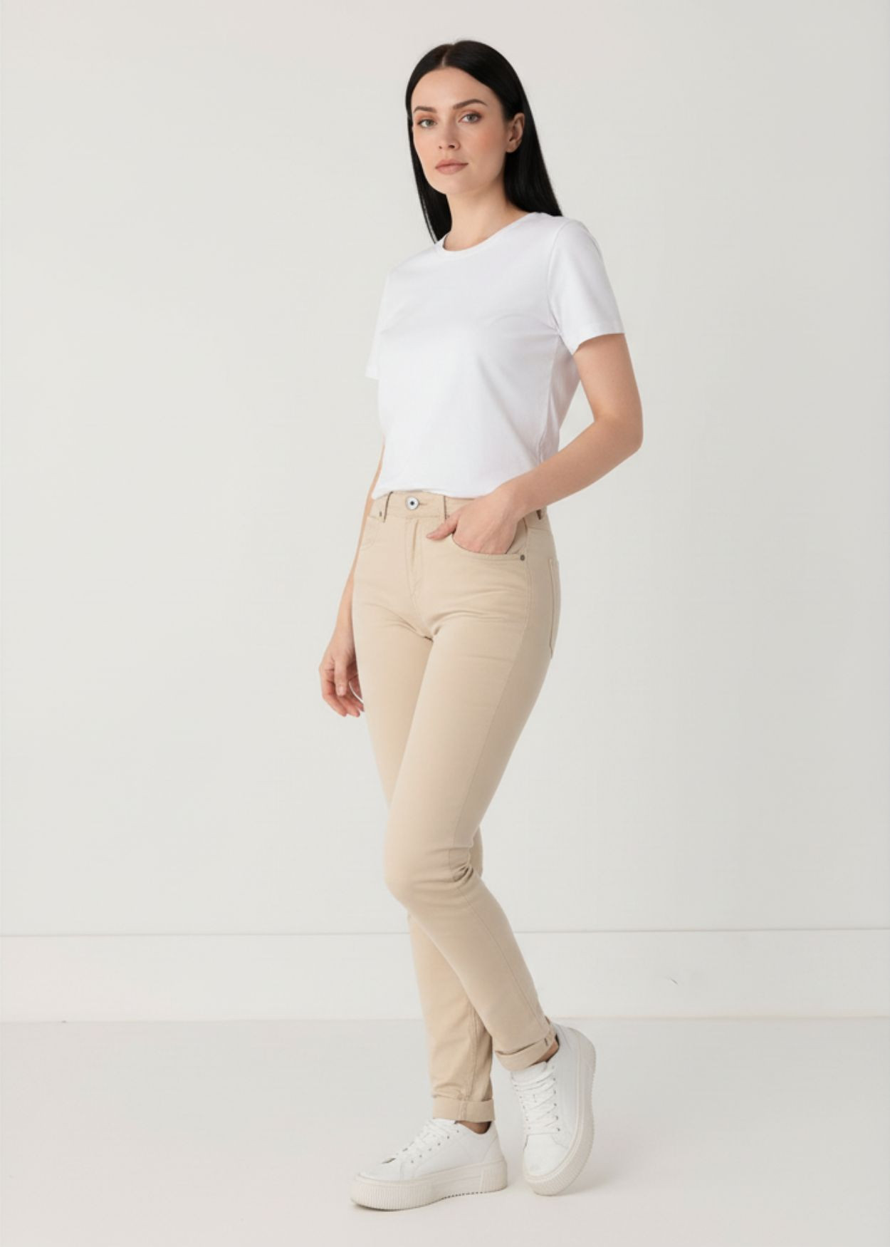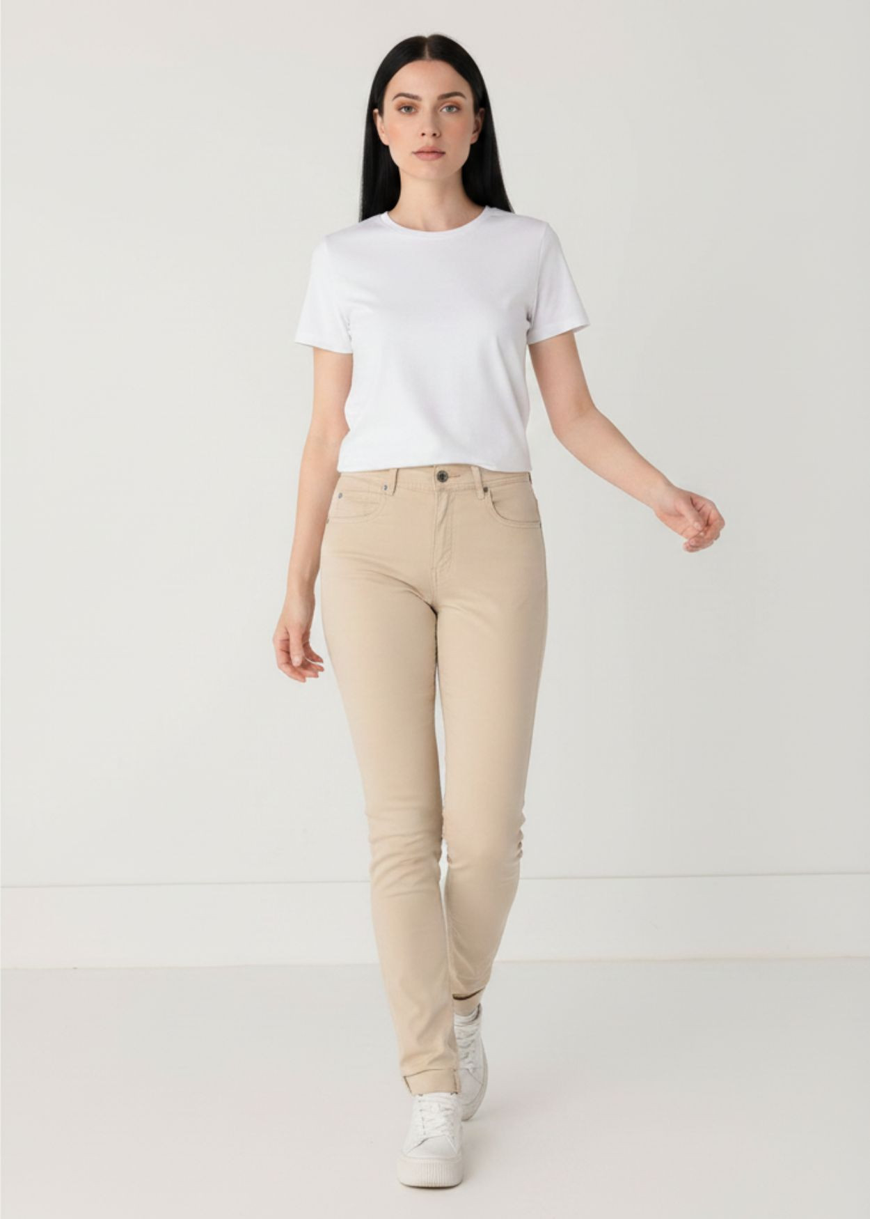 Conçu pour épouser harmonieusement les courbes féminines, ce modèle propose une coupe slim moderne qui allonge la jambe tout en préservant une grande liberté de mouvement. Sa taille naturelle assure un maintien impeccable et une silhouette structurée, vous permettant de vous sentir à l'aise du matin jusqu'au soir. La composition du tissu, associant la respirabilité du coton à la souplesse de l'élasthanne, garantit une élasticité optimale. Le pantalon s'adapte ainsi à vos gestes sans jamais se déformer, offrant cette sensation de seconde peau si recherchée.